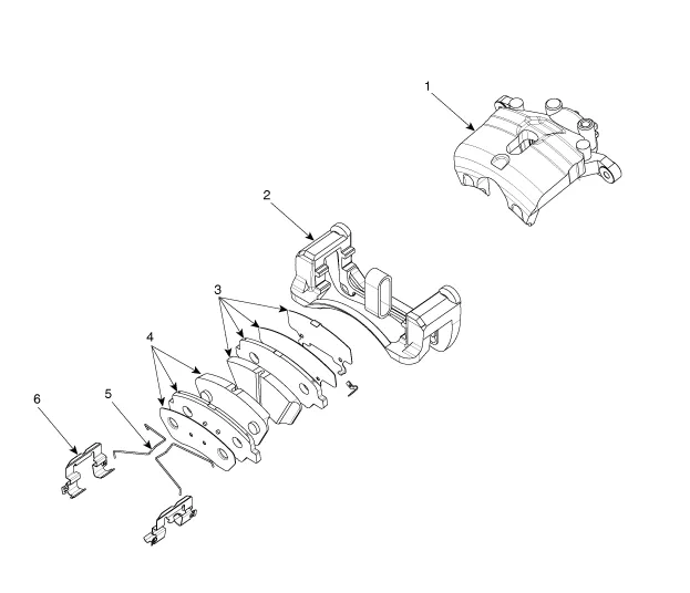 | 1. Bremssattelgehäuse 2. Bremssattelträger 3. Bremsbelageinheit [IN] |