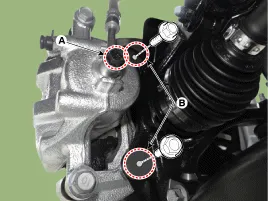 Schrauben (A, B) lösen, dann den Bremssattel entfernen.