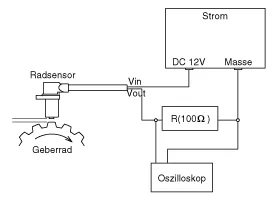 Die Ausgangsspannung zwischen der Klemme des Raddrehzahlsensors und Karosseriemasse messen.