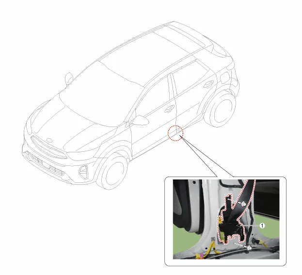 Obere B-Säulenverkleidung abnehmen. (Siehe Seite BD-60) (Siehe Innenverkleidung - "B-Säulenverkleidung") |