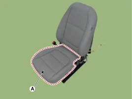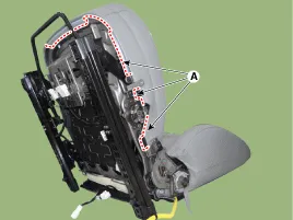 Die Schutzelemente (A) herausziehen und den Vordersitzpolsterbezug vom Vordersitz-Polsterrahmen abnehmen. [Unten]
