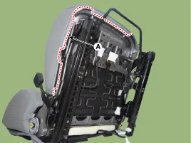 Vordersitzpolsterbezug (A) vom Vordersitz-Polsterrahmen entfernen.
