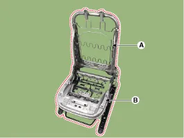 Nach Lösen der Befestigungsschrauben Vordersitzlehnenrahmen (A) und Sitzpolsterrahmen (B) abtrennen.