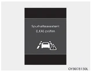 Die LKA-Fehleranzeige (gelb) leuchtet,