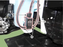Untere Motorraumabdeckung abbauen. D 1,6 U2 TCI (Siehe Motormechanik - "Untere Motorraumabdeckung") G 1,0 T-GDI KAPPA (Siehe Motormechanik - "Untere Motorraumabdeckung") G 1,2 MPI KAPPA (Siehe Motormechanik - "Untere Motorraumabdeckung") G 1,4 MPI KAPPA (Siehe Motormechanik - "Untere Motorraumabdeckung") |