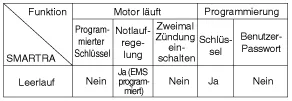 Wenn der SMARTRA-Status neutral ist, bleibt das EMS verriegelt. Der Motor kann auch durch "doppelte Zündung" nicht gestartet werden.