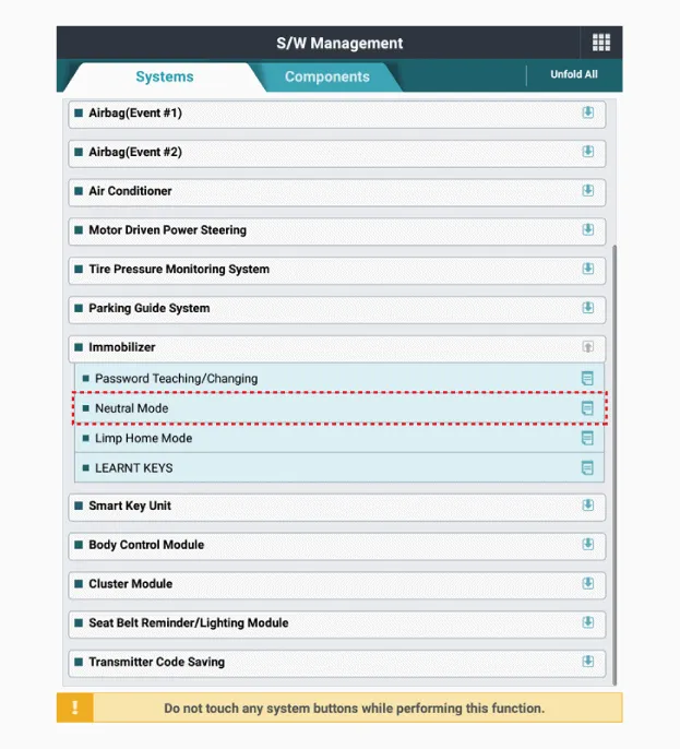 Mit dieser Funktion werden PCM (ECM) und Schlüssel neutralisiert. z.B) Bei Verlust des Schlüssels das PCM (ECM) neutralisieren und danach die Schlüssel anlernen.