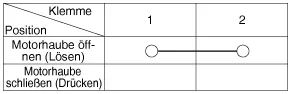 Zwischen den Klemmen und Masse wie unten gezeigt auf Durchgang prüfen. (Siehe Karosserie - "Haubenschloss")