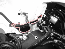 Befestigungsschraube lösen und Steckverbinder (B) abziehen, dann Alarmsirene ausbauen.