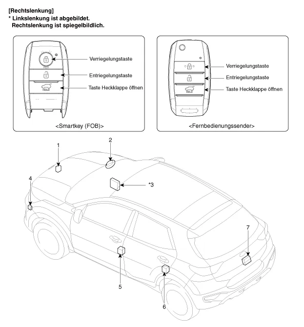 ※ Bemerkung: Bei einem Fahrzeug mit Smartkey-System gilt das Gleiche auch für die passive Türverriegelungsfunktion.