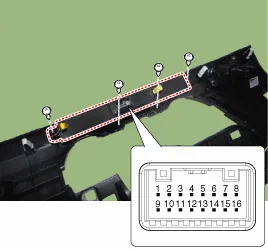 Untere Armaturenbrettverkleidung abbauen. (Siehe Karosserie - "Mittlere Armaturenbrettverkleidung") |