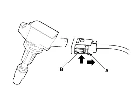 Befestigungsschrauben lösen, dann Zündspule (A) ausbauen.