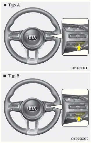 Durch diese beschriebenen Aktivitäten wird die Tempomat-Steuerung unterbrochen (die Kontrollleuchte Tempomat- Einstellung erlischt), das Tempomat- System wird jedoch nicht abgeschaltet. Wenn Sie den Betrieb des Tempomats wieder aufnehmen möchten, schalten Sie den Hebel am Lenkrad nach oben (auf RES+). Das Tempomat- System bringt das Fahrzeug wieder auf die zuvor eingestellte Geschwindigkeit.
